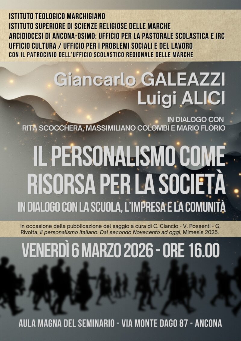 Martedì 11 novembre 2025, ore 16.00 L’Istituto Teologico Marchigiano e l’Istituto Superiore di Scienze Religiose delle Marche “Redemptoris Mater” sono lieti di comunicare che il prossimo martedì 11 novembre 2025, alle ore 16.00, ci sarà l’inaugurazione dell’Anno Accademico 2025/26. La prolusione sul tema della pace nel mondo sarà tenuta da S.Em. Rev.ma Card. Matteo Zuppi, Arcivescovo di Bologna e Presidente della Conferenza Episcopale Italiana.
